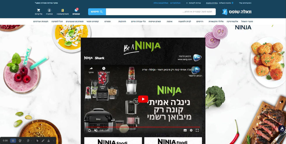 עיצוב עמוד אינטרנטי עבור מותג נינג'ה בתוך אתר וואלה שופס.